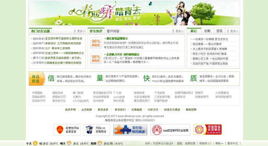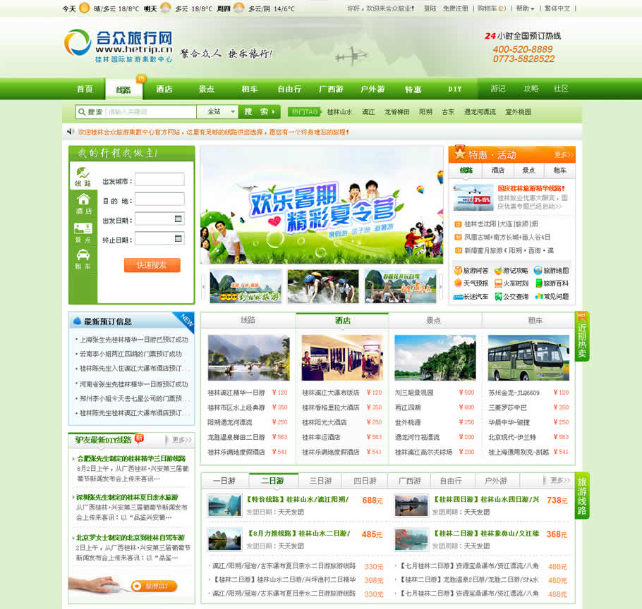 合众旅行网是桂林合众国际旅游有限公司旗下专业从事在线旅游服务的网站,合众旅行网的品牌色调为绿色、橙色、蓝色,清新明快、充满活力,代表了旅游者轻松愉快、纵情山水的情怀。