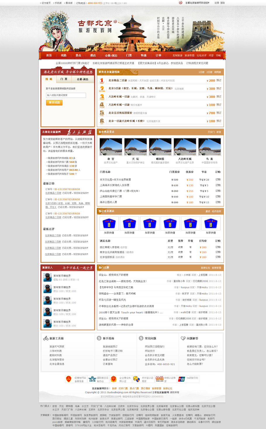 特点:古都北京旅游网以文化为理念,将旅游融入到攻略中,不是传统的展示产品的旅游网站,更多的是通过与驴友的文化交流产生共鸣,志同道合产生旅游行为。设计的时候我们结合客户的需求更多的以文化为底蕴,简洁大气,思路清晰。