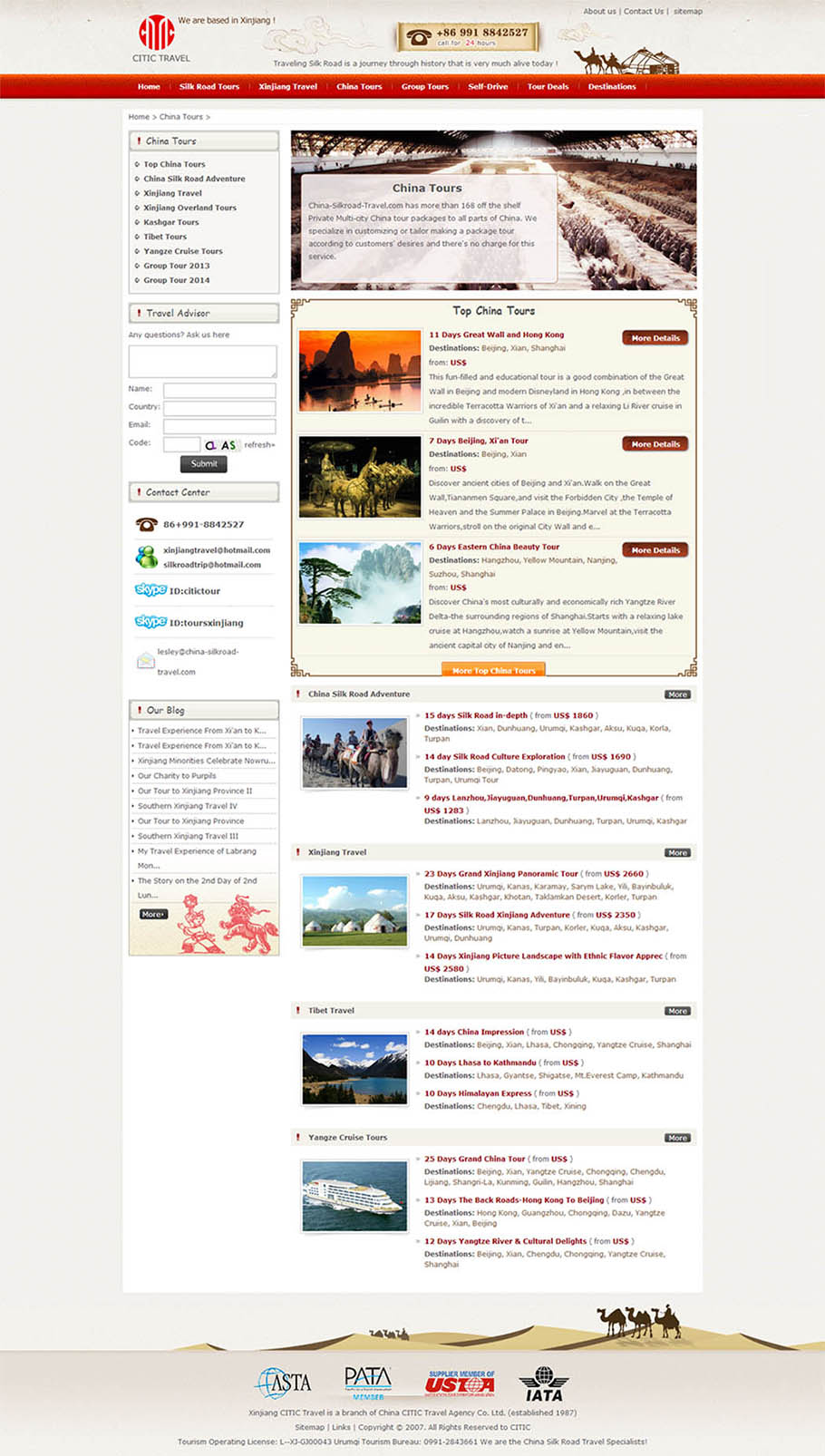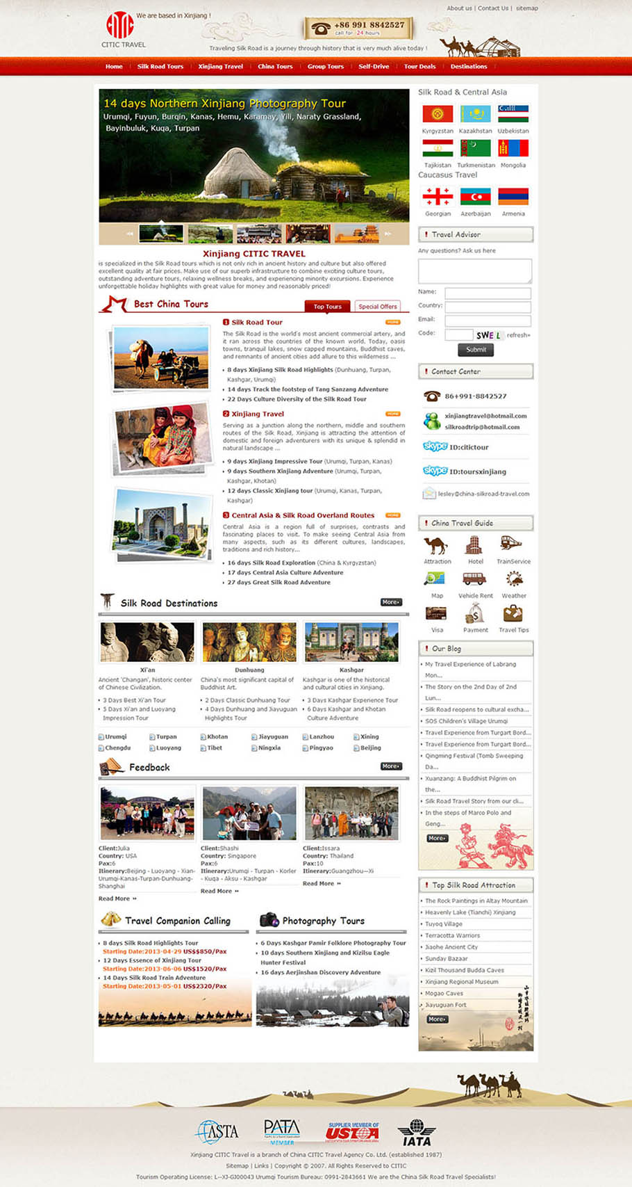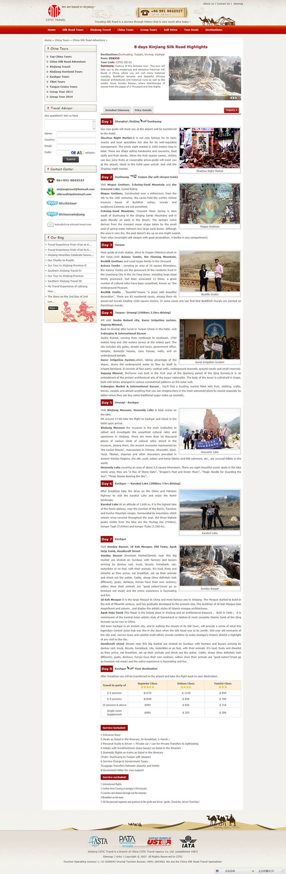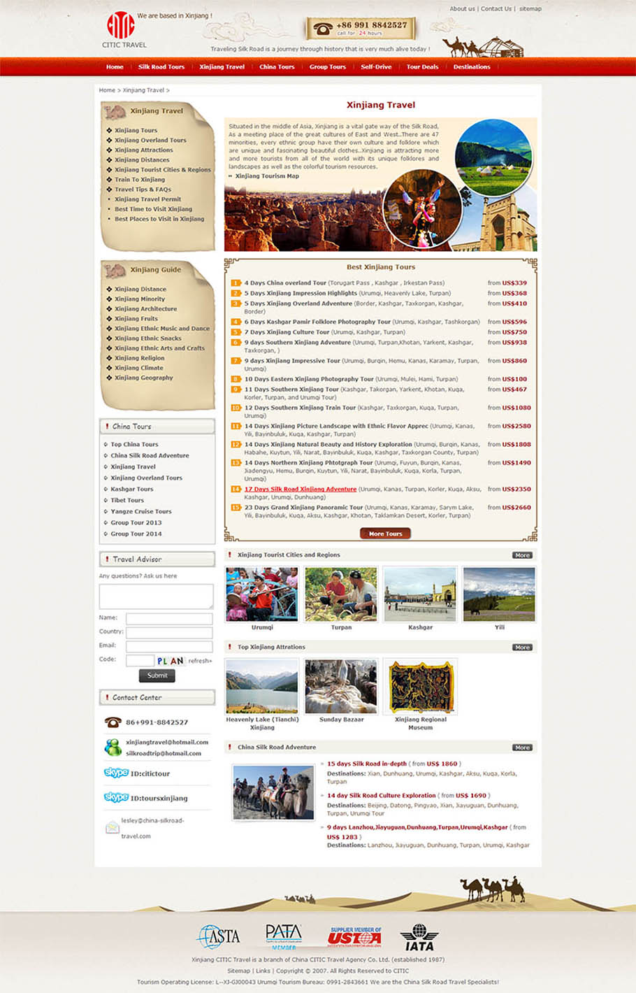 特点:新疆英文旅游网是新疆中信国际旅行社下的部门网站,以新疆本地线路旅游及丝绸之路线路为特色,景区介绍,酒店预订等为一体的旅游服务网,是国内丝绸之路旅游线路做得最专业的旅游网!