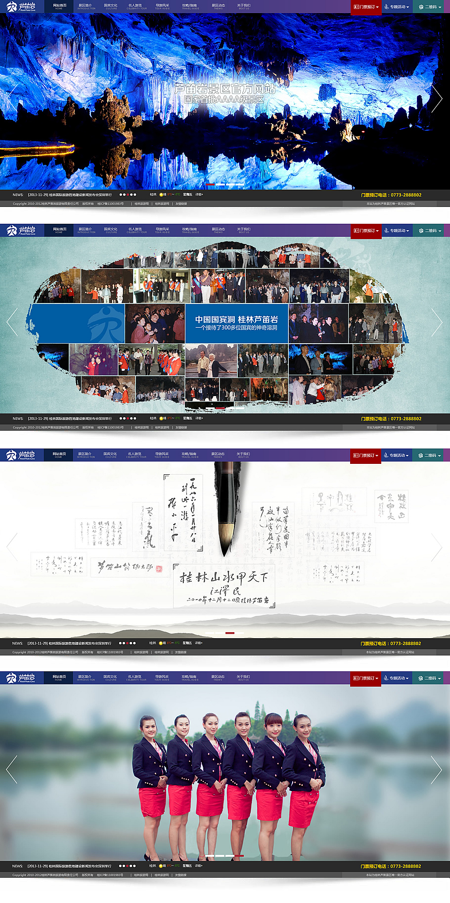 芦笛岩位于桂林市西北桃花江畔,在光明山的南侧山腰。洞口原长有一种芦荻草,传说可以做笛子,吹出悦耳动听的声音,芦笛岩因此得名。芦笛岩的形成经历了漫长的年代,100万年前这里原是一个古地下湖,由于地壳运动山体抬升,地下水位下降,地下湖变成了山洞。后来,雨水形成的地下水沿着山体中许许多多的破碎带流动,溶解了岩石中的碳酸钙,变成了含有碳酸根与钙离子的溶液。当地下水从岩石缝隙流到洞中时,二氧化碳溢出,钙离子就沉淀结晶,经过长年的积累形成千姿百态的钟乳石,人们称赞芦笛岩是一座大自然的艺术之宫。远在1000多年前的唐代就有人来芦笛岩游览,芦笛岩的石壁上留下了不少古人的墨迹,但历代都没有开发。芦笛岩于1959年开始进行勘测与建设。1962年正式对游人开放。